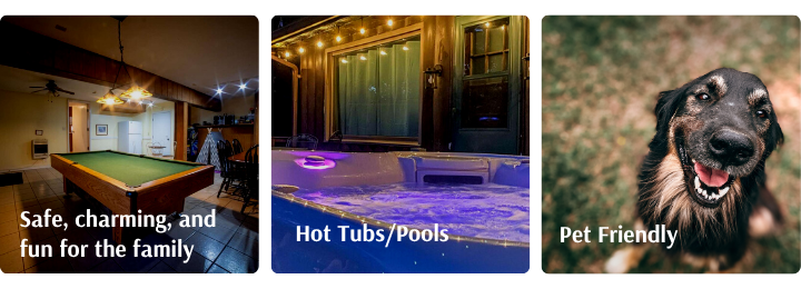 Our vacation rentals come with fully-equipped kitchens, fireplaces, hot tubs, outdoor gas or charcoal grills, satellite television, central heat and air conditioning, and telephones.