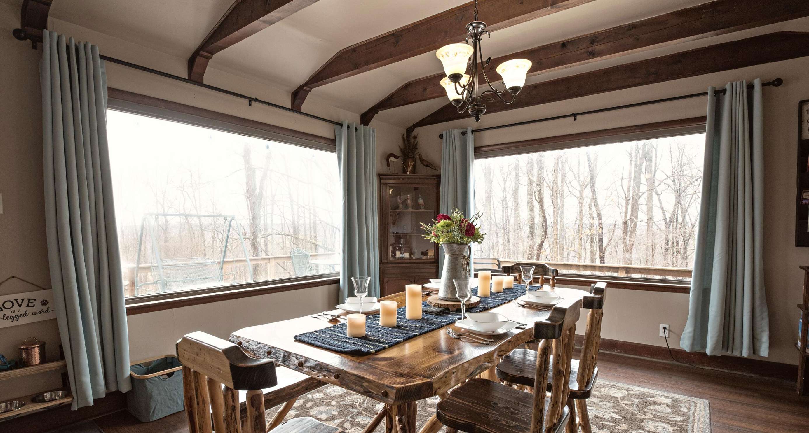 Relaxation on tap when gazing upon the beauty of Lake Lemon through the impressive picture windows. Unwind after exploring the neighboring wineries or shopping in Nashville. The cozy electric fireplace provides the perfect setting for creating memories with family and friends. While noshing on breakfast, you can bird-watch at the ample dining table through the large picture windows. Take in an evening meal while watching the sun set into the woods. A cabin for all seasons! Frolic in the outdoor pool to cool off after a long nature hike. Endless outdoor activities abound at Lake Lemon, and quaint dining and shopping in nearby Nashville will fill your days and nights.