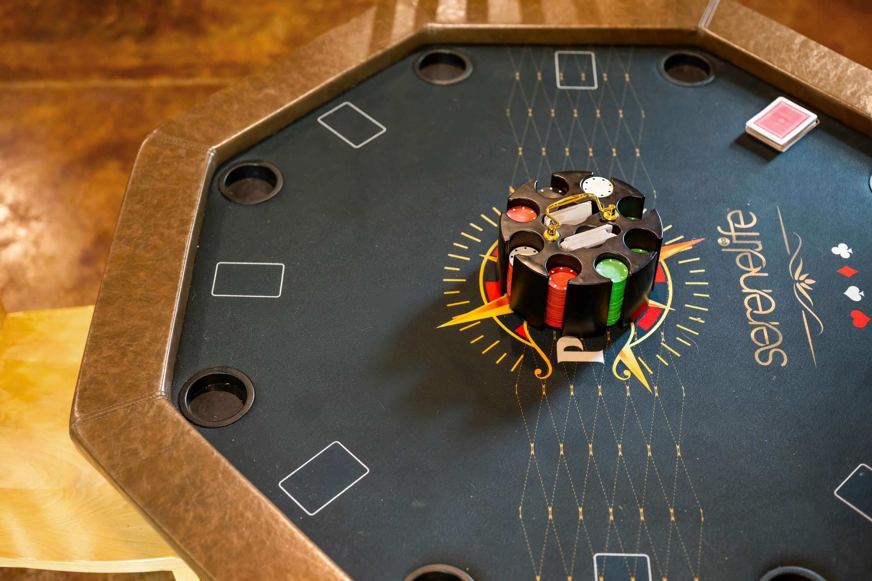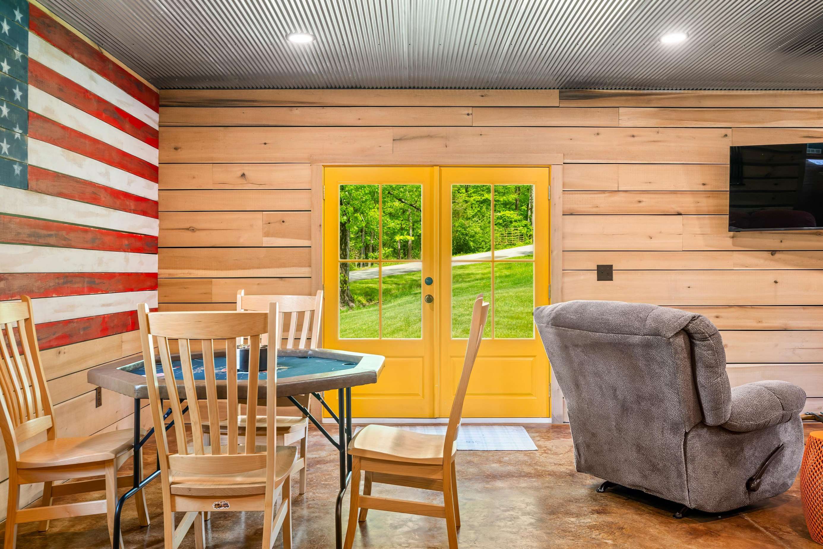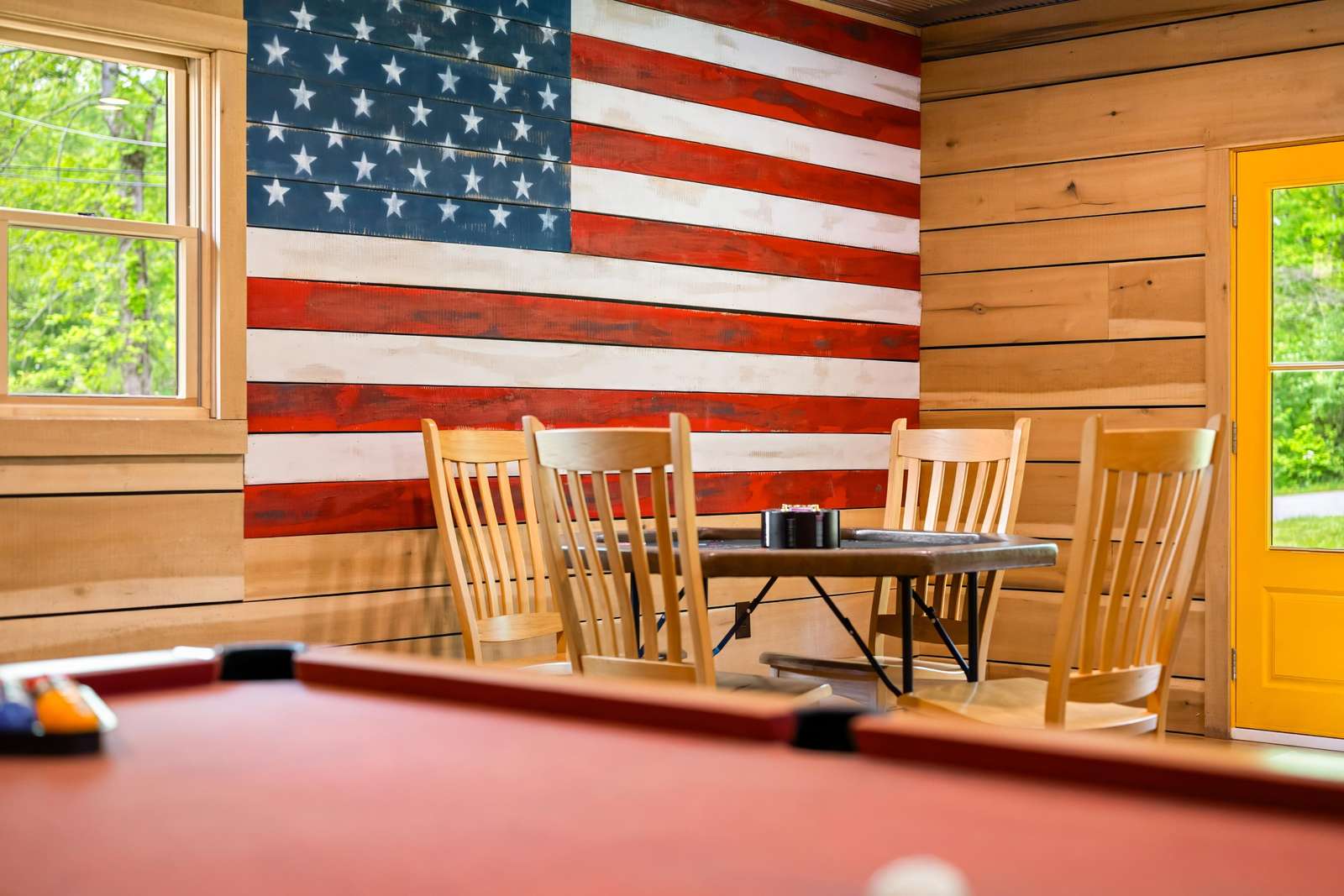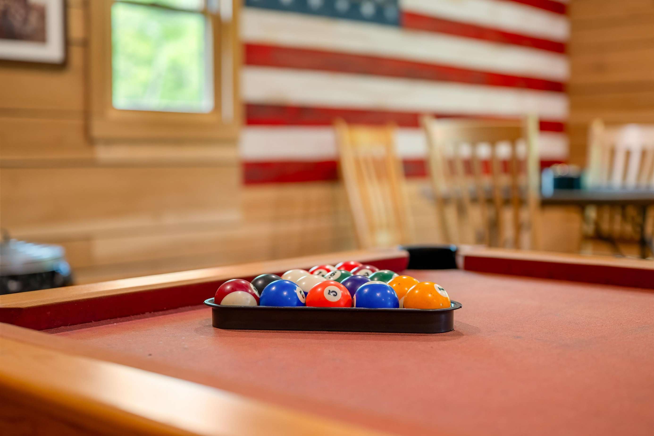Wait for the best part - there is a HUGE game room fully equipped with a pool table, large screen TV, nice furniture and a place to park your mountain bikes inside. This is most likely where you will be spending your time. Have the kids pack their favorite games.