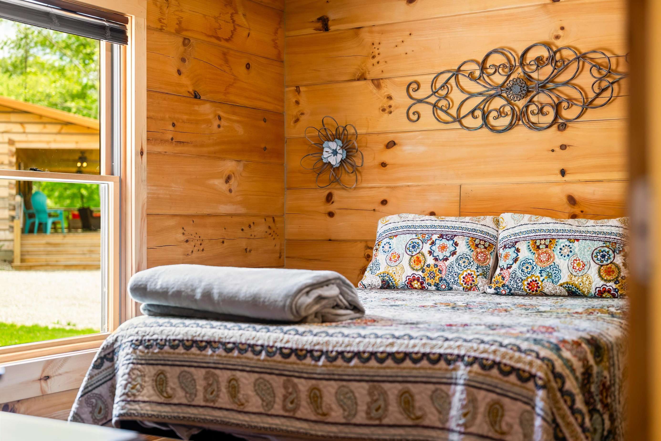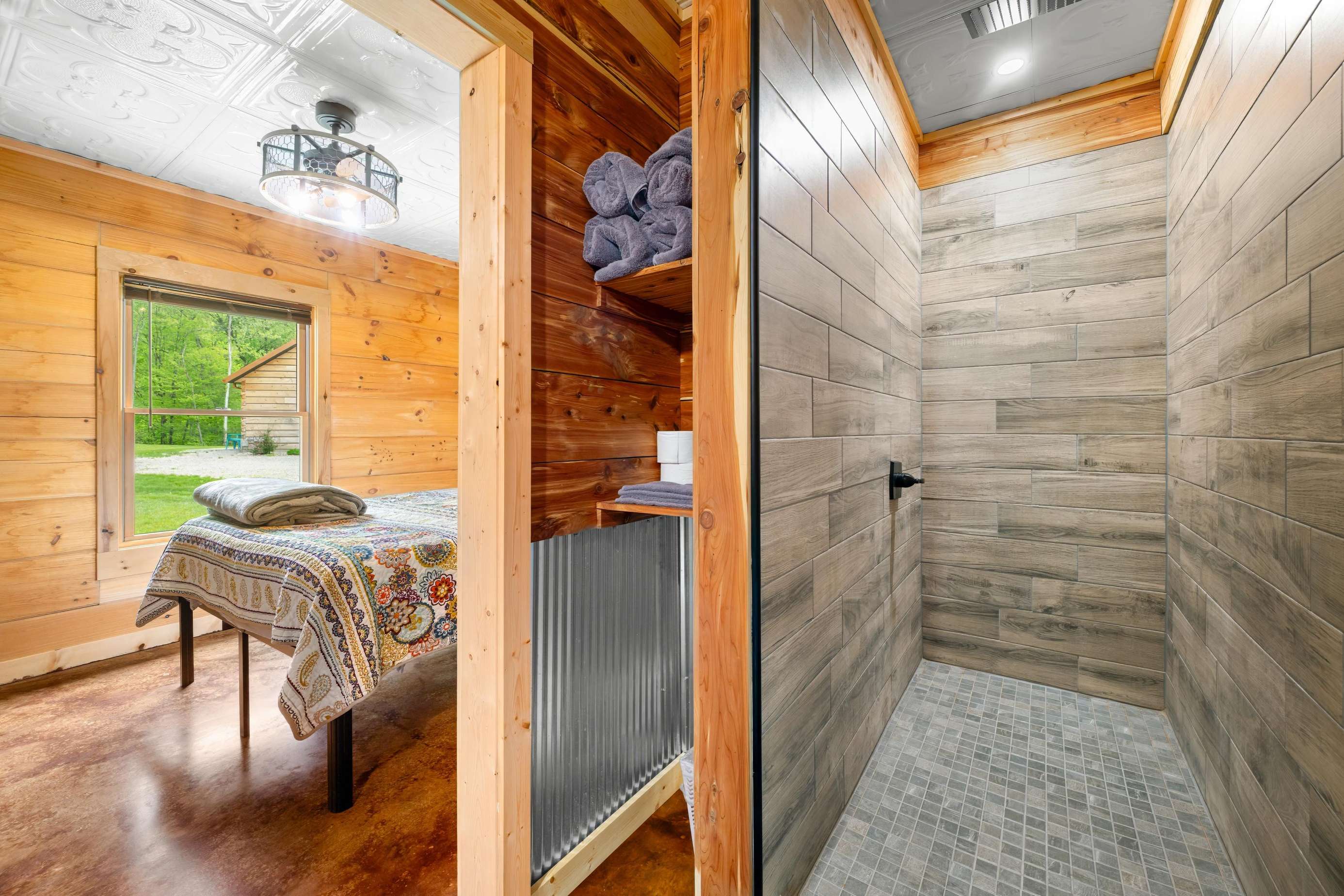 Close to the town of Nashville and the Brown County State Park, this cabin is in a perfect location. Overlooking the rolling hills and the Salt Creek Golf Course, with the 19th Hole Bar and Grill and just minutes from the quaint little town of Nashville. There is a shared firepit with the sister cabin - Bear's Den - Natalie"