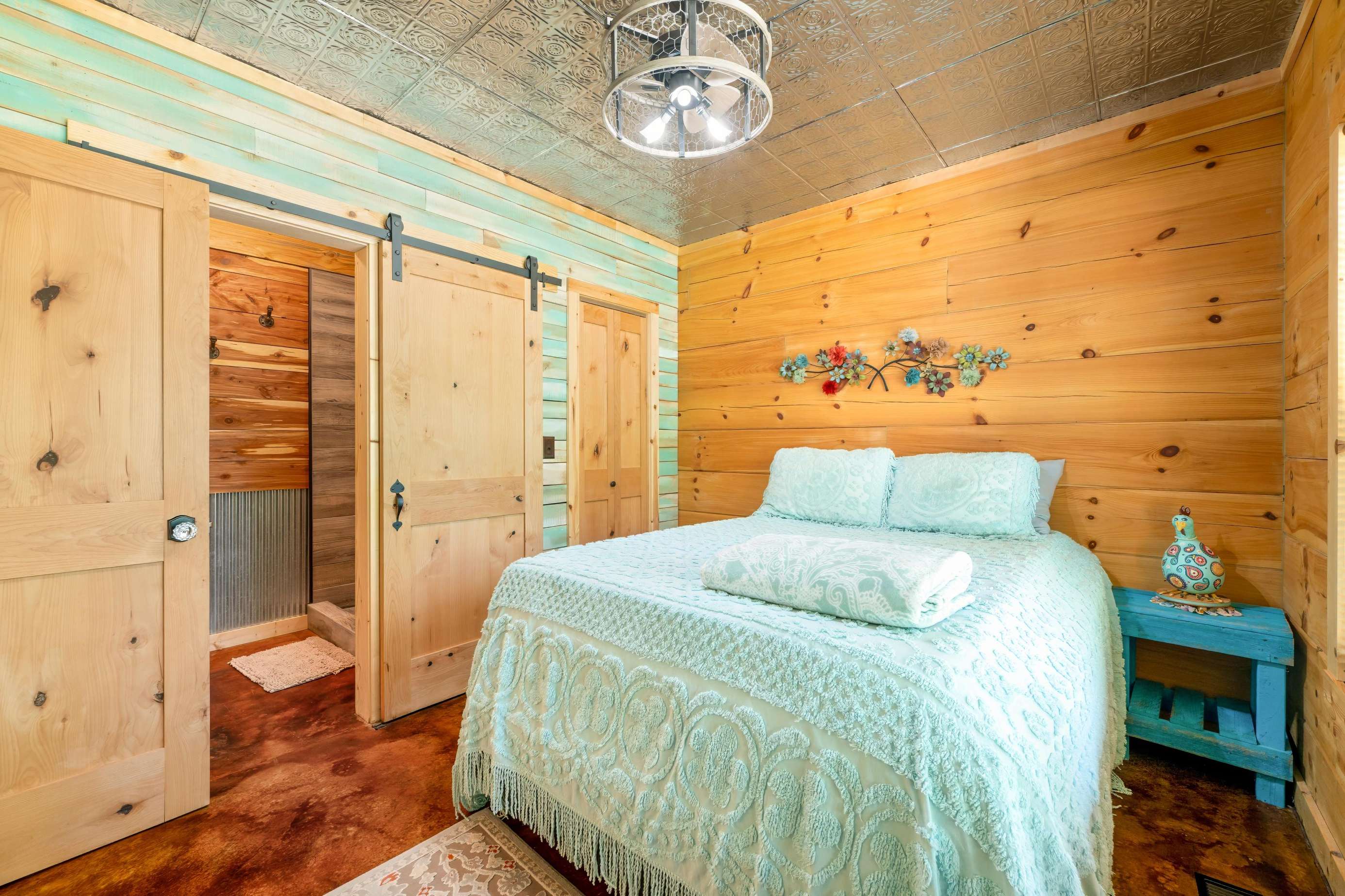 Bedroom #1 has a king bed and a clawfoot tub/shower combo. The other 2 bedrooms each have queen beds with walk in showers in their bathrooms so no arguing over who gets which one.