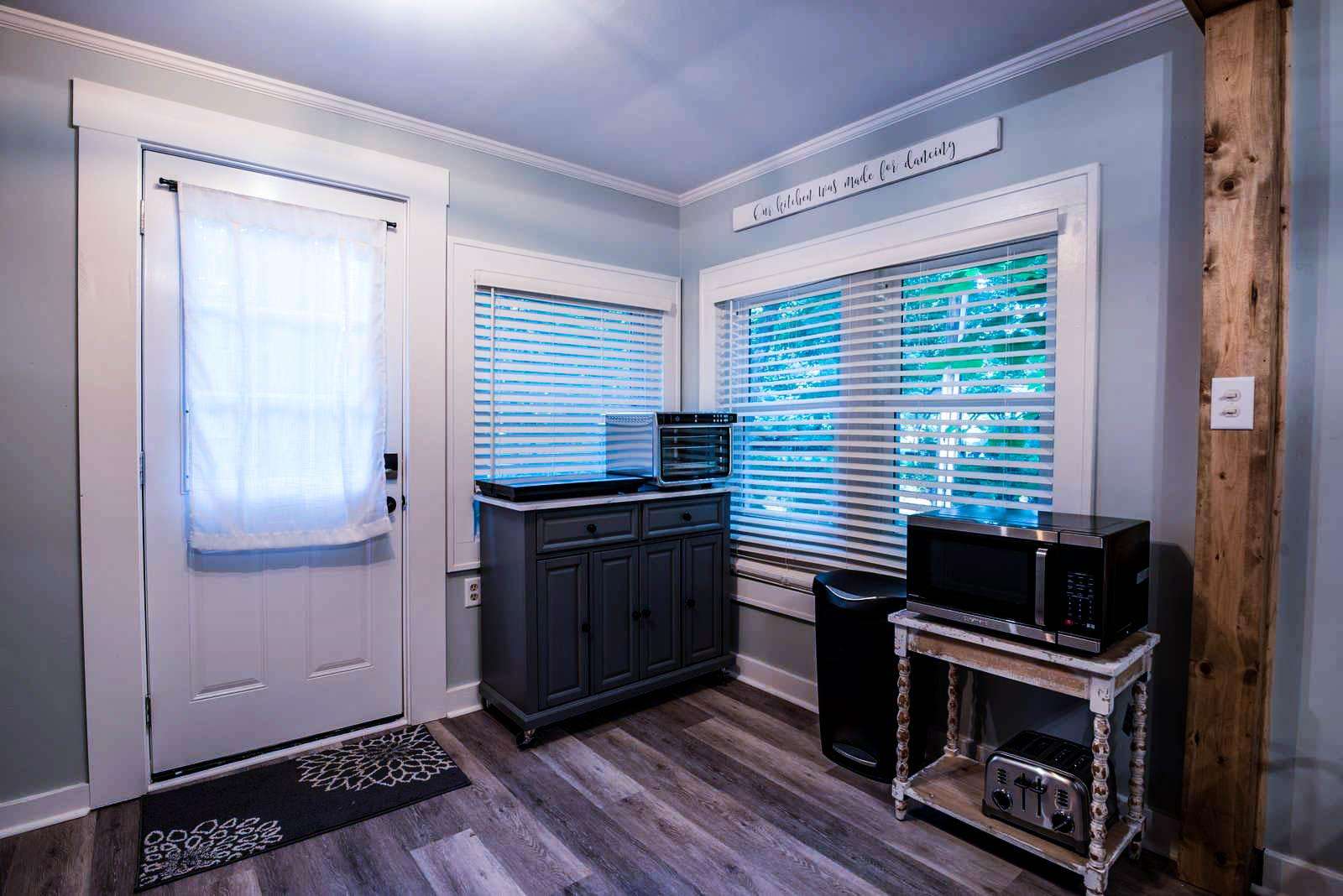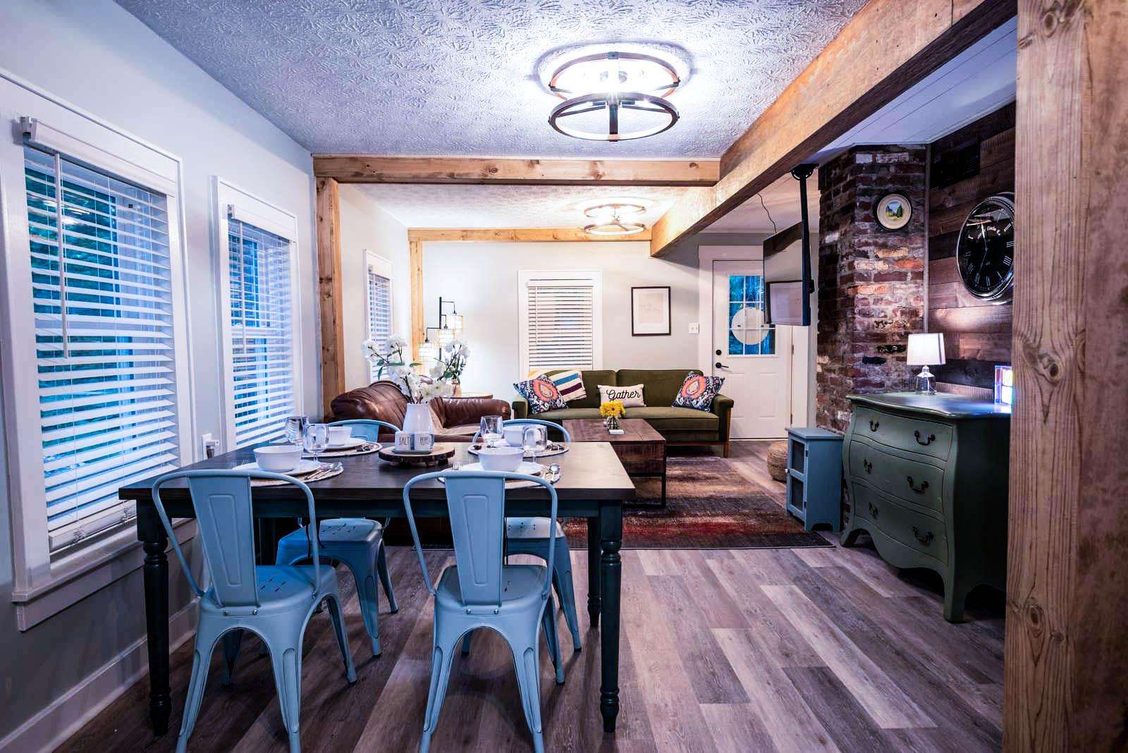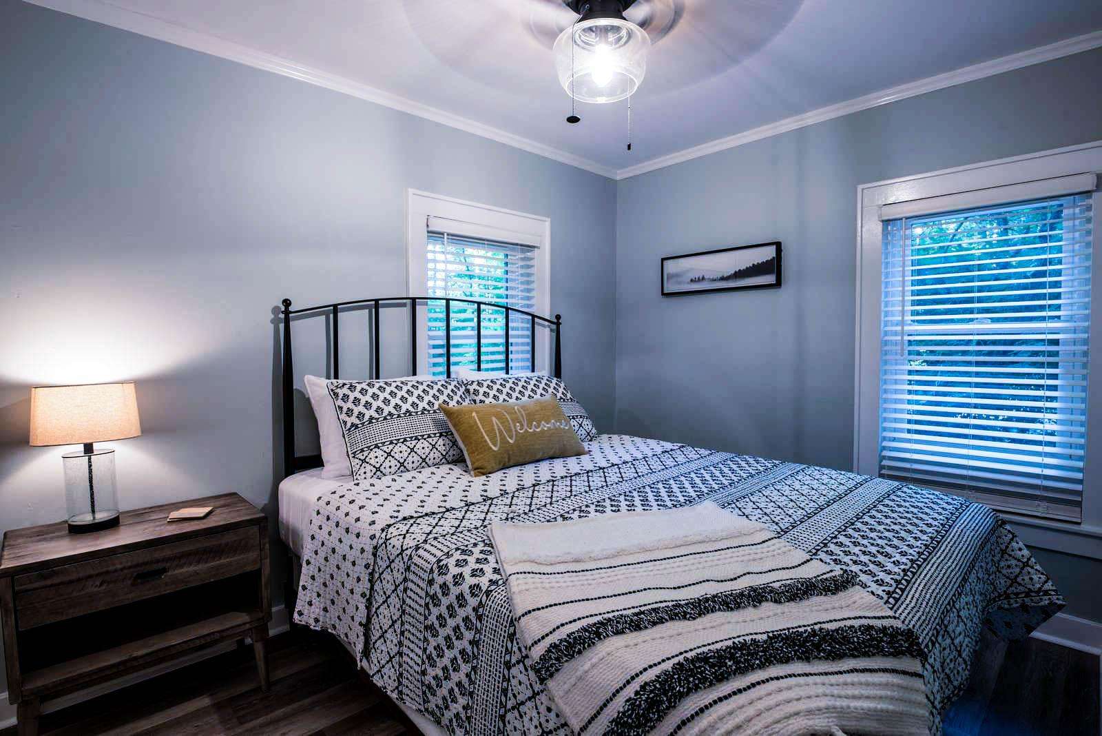 This newly renovated two-bedroom, one-bathroom cottage is only two miles from Nashville. As you approach the house, you'll be greeted by a charming outdoor shelter with a grill over the creek. Inside, you can relax in our cozy reading nook, play games in the kitchenette, or unwind on the porch swing.