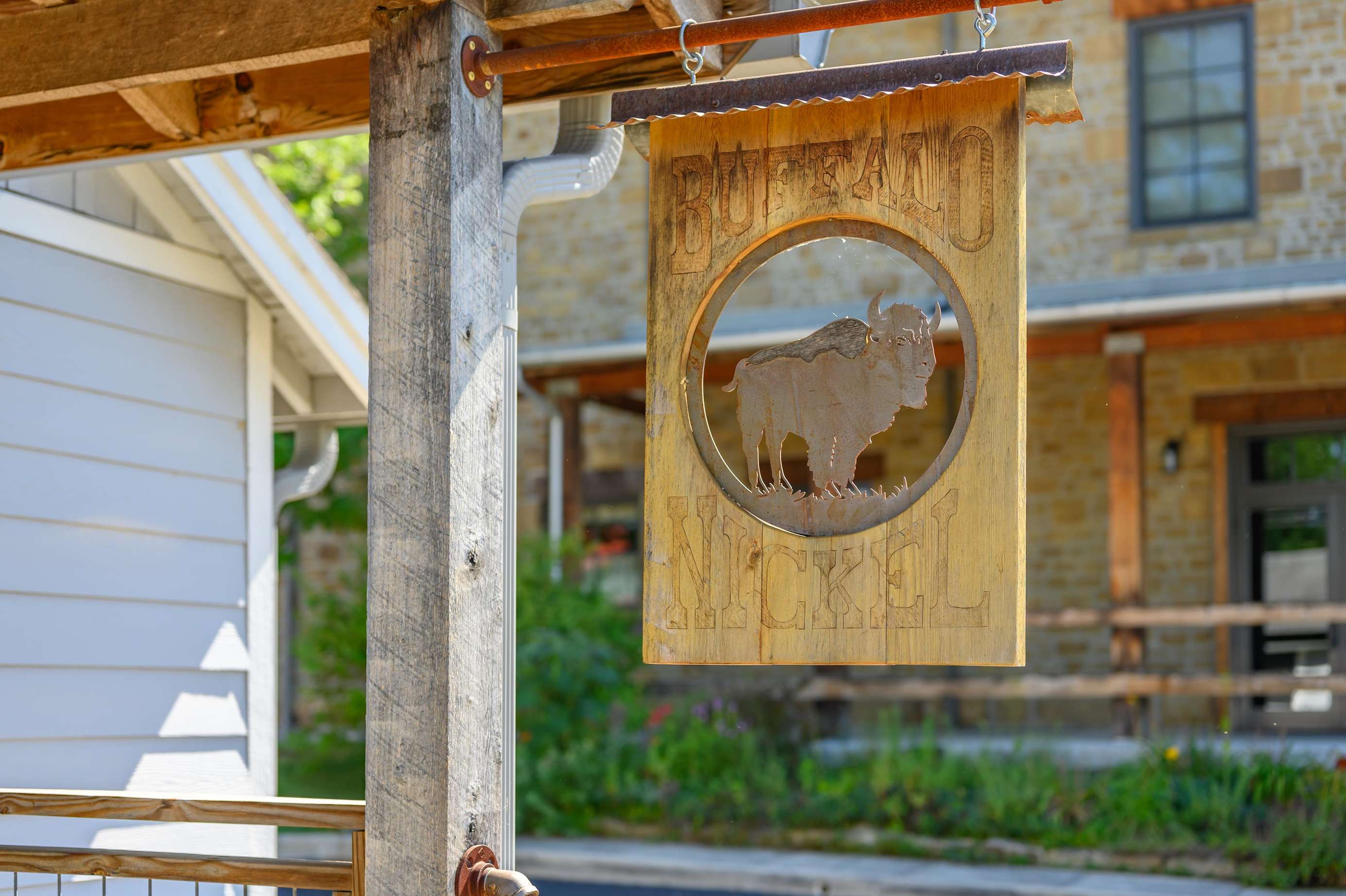 When the Buffalo Nickel owners remodeled the property, they discovered old copies of the Indianapolis Star Newspaper used as insulation. The age of the newspapers prompted further research of the property, and they found that one of the earliest residents was a woman whose father settled in Brown County around the turn of the century. They discovered the woman's most prized possessions were two small nickels her father made upon first settling. The woman shared this story with her local paperboy, showing him the nickels to teach a lesson about hard work. Thus, the name Buffalo Nickel was adopted.