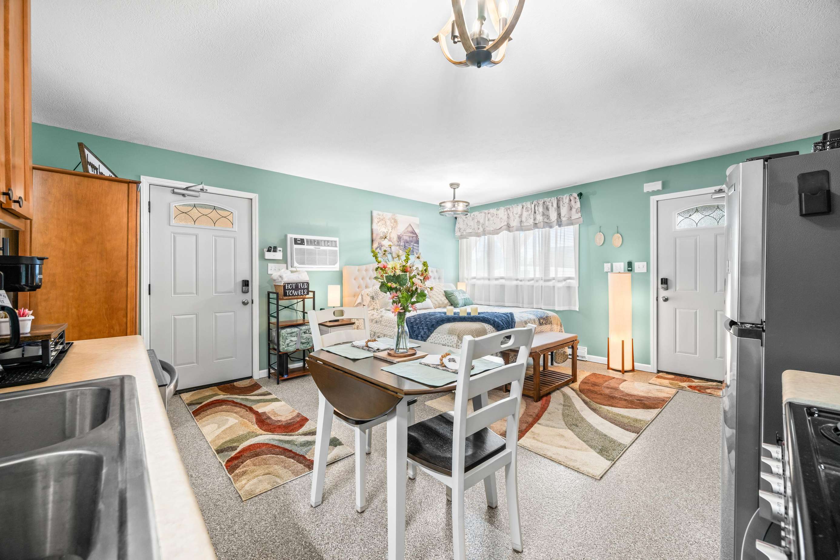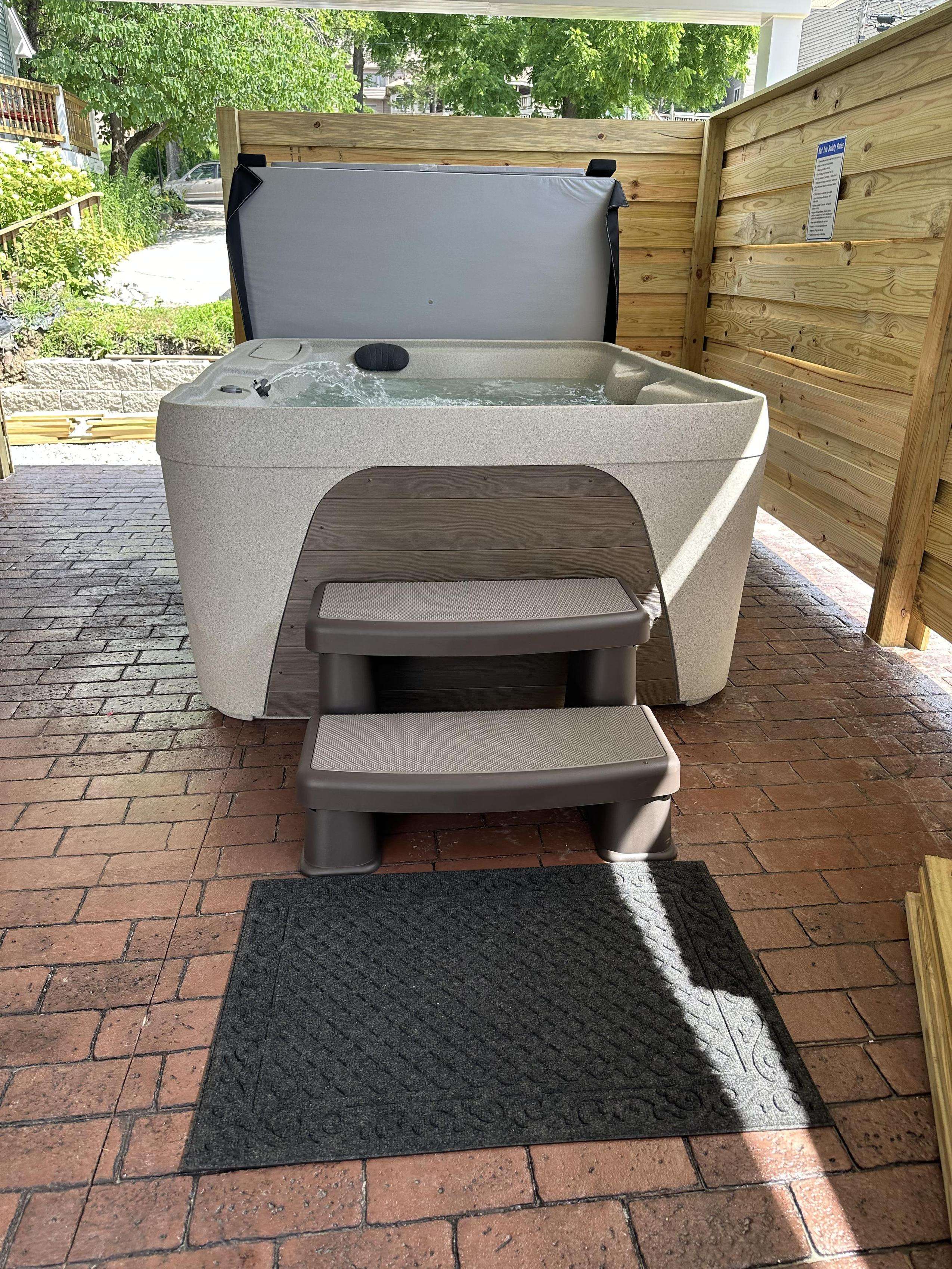 Step outside to your **private, fenced-in patio** with a **HOT TUB** It’s the ideal spot to unwind after a day of hiking, shopping, or enjoying the town’s many festivals and events.