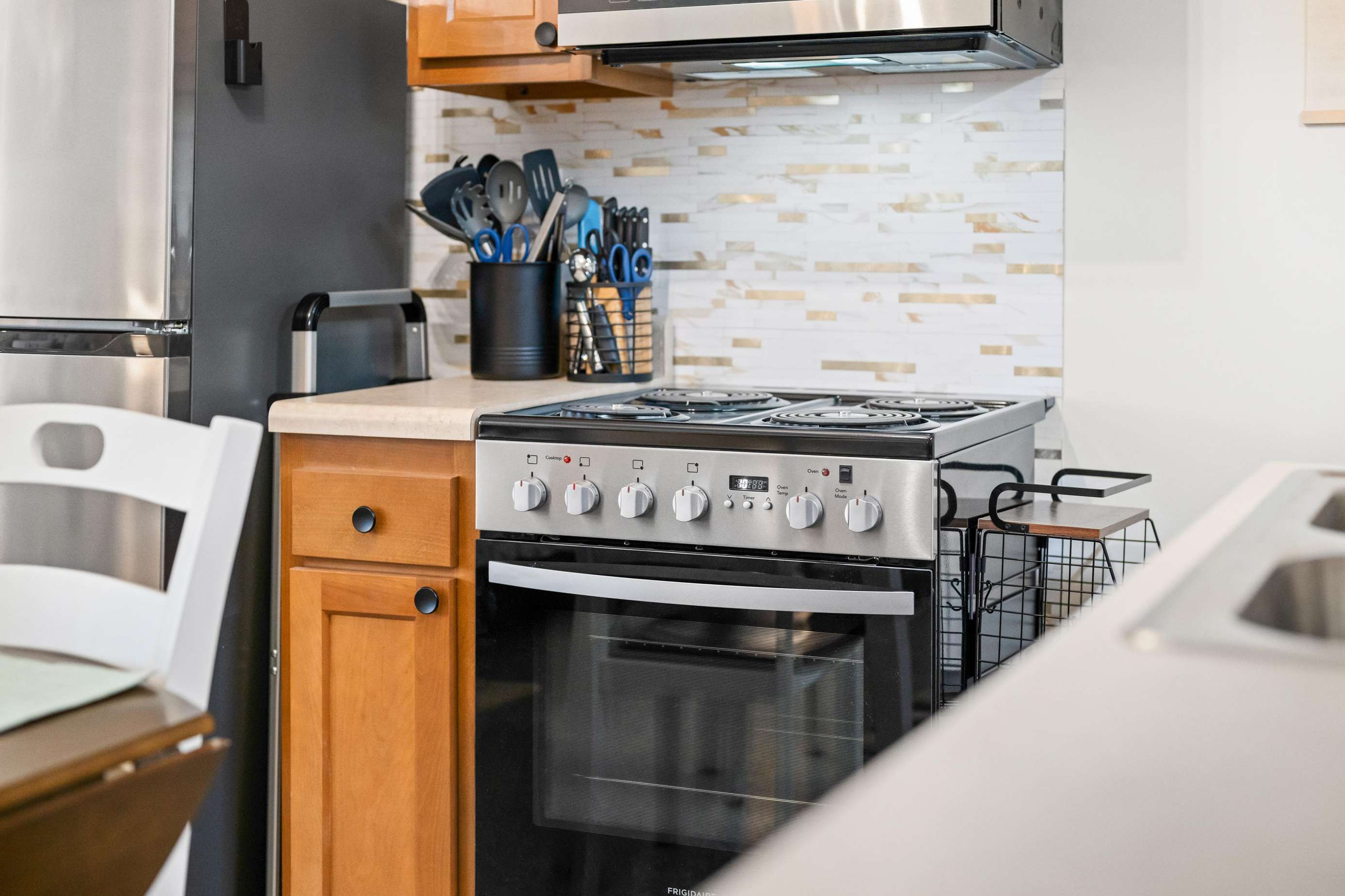 Inside, you’ll find a cozy and stylish open-concept layout featuring a **king-size bed** and a **fully equipped kitchen**—perfect for weekend cooking or just morning coffee before heading out to explore. Whether you’re visiting for a romantic getaway or a peaceful solo retreat, this studio blends comfort and convenience.