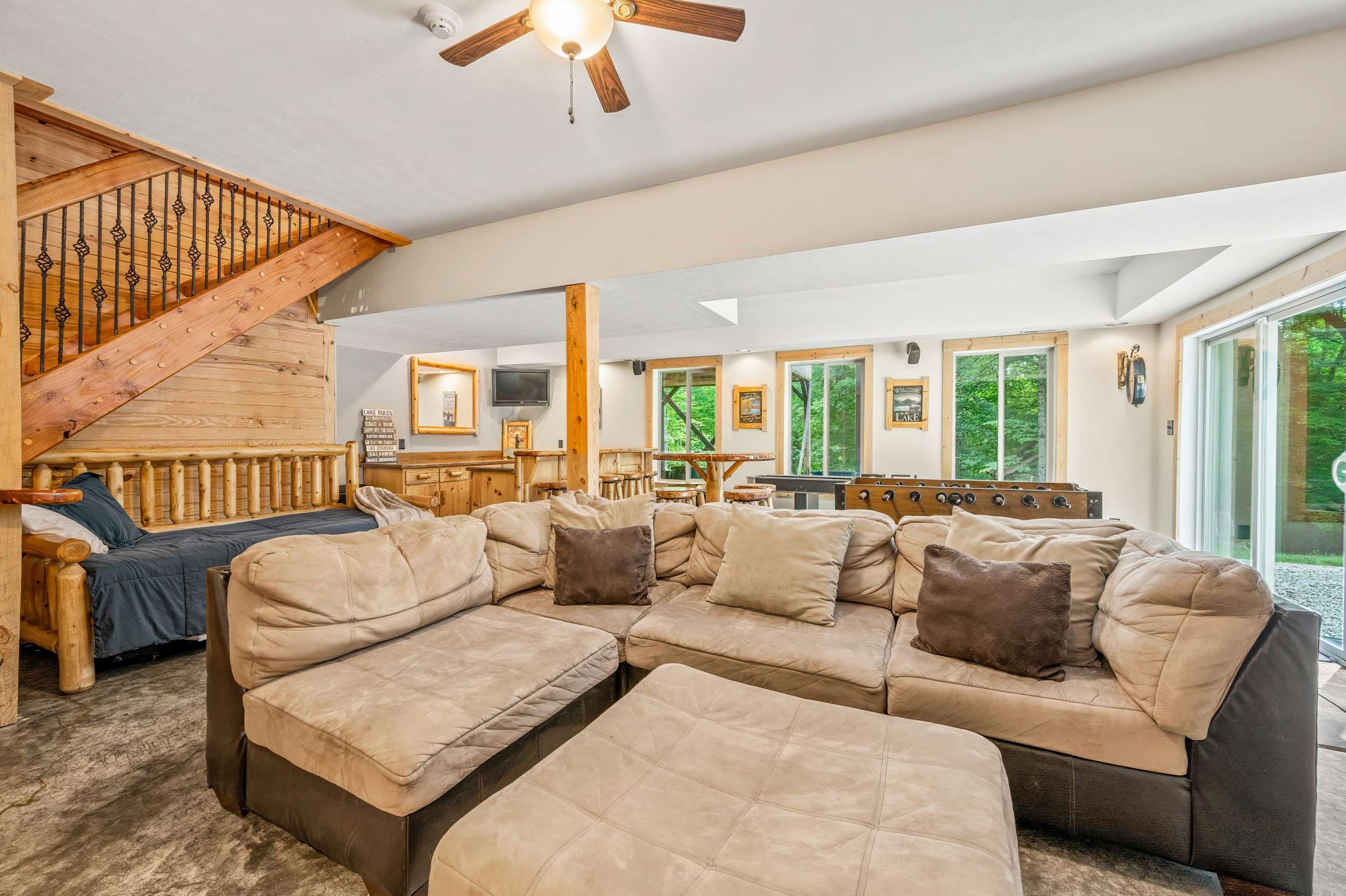 The lodge boasts two serene bedrooms, a cozy loft bedroom, and three pristine bathrooms. With its central location just 15 minutes from Indiana University and downtown Nashville, Indiana, you can enjoy luxury and explore nearby attractions like Bloomington, Lake Lemon, Nashville, and Yellowwood State Forest.