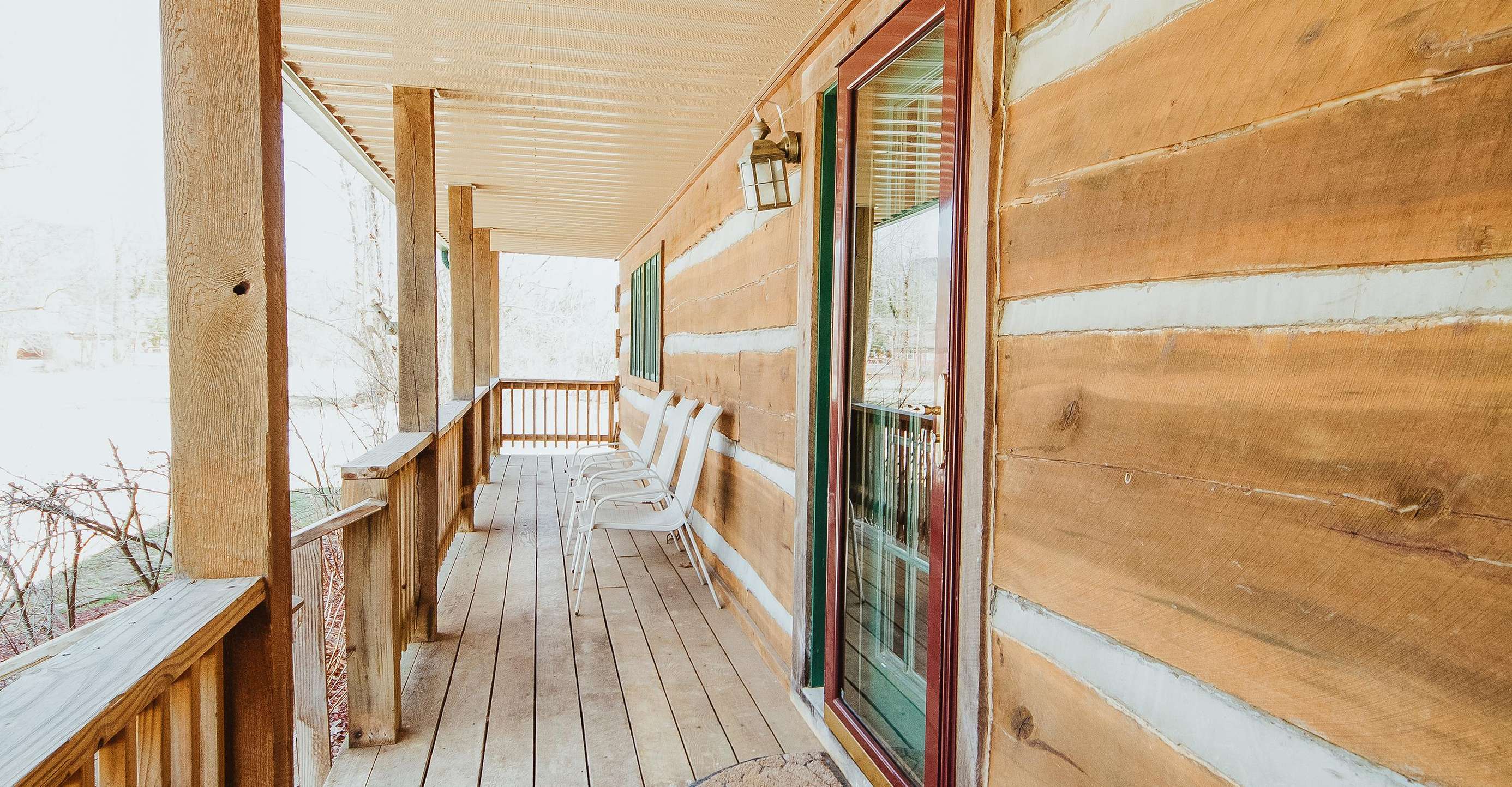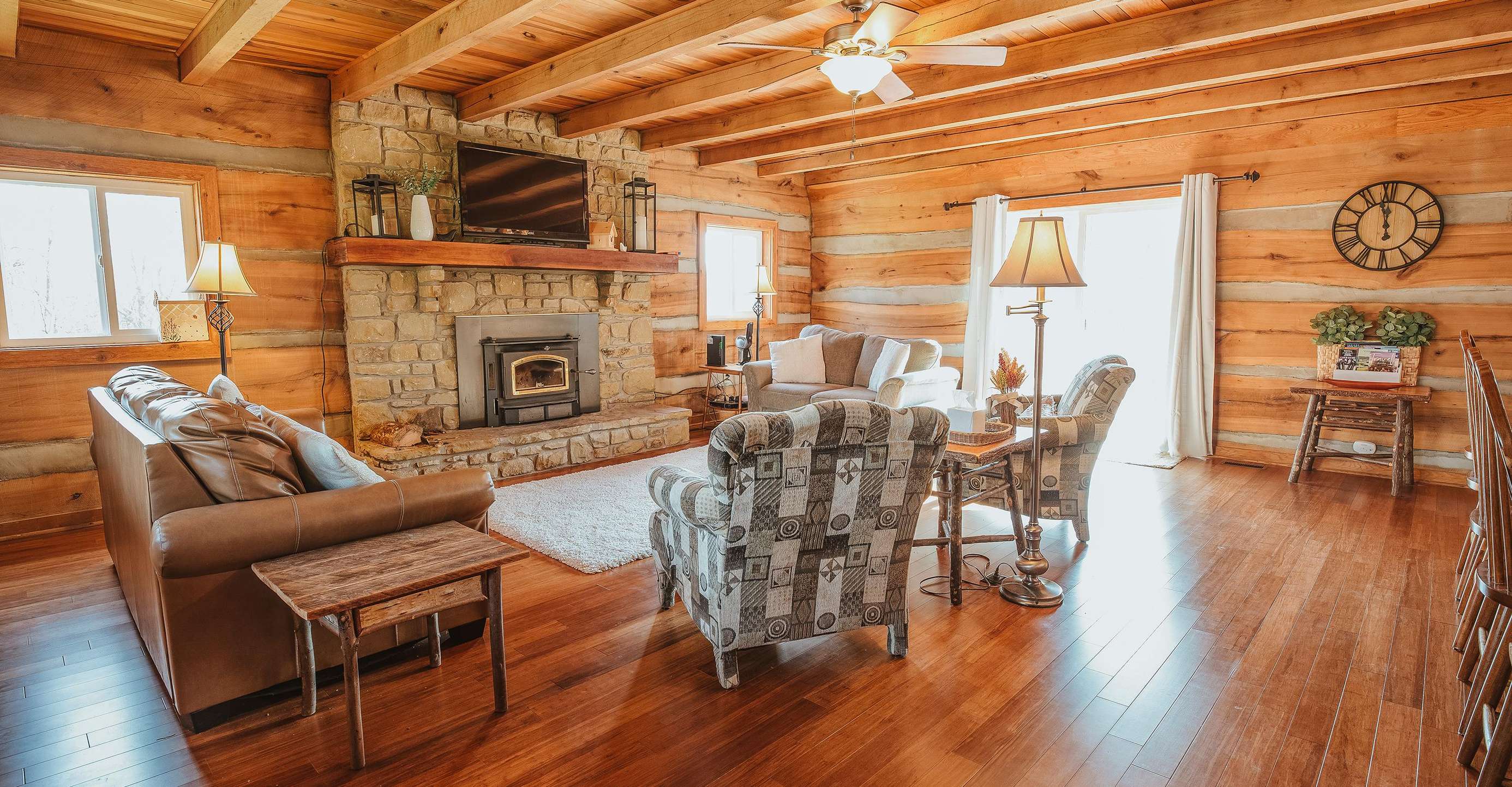 This partially wooded property provides peace, quiet, beautiful scenery, and wildlife. Whether the occasion is a gathering of friends, family, or even a romantic getaway, this log cabin beauty provides the perfect setting for your escape. The year-round sun porch, with its large dining table and comfortable chairs, is a trendy spot for meals and craft projects. The back deck offers outdoor entertainment with its comfortable seating and propane grill.