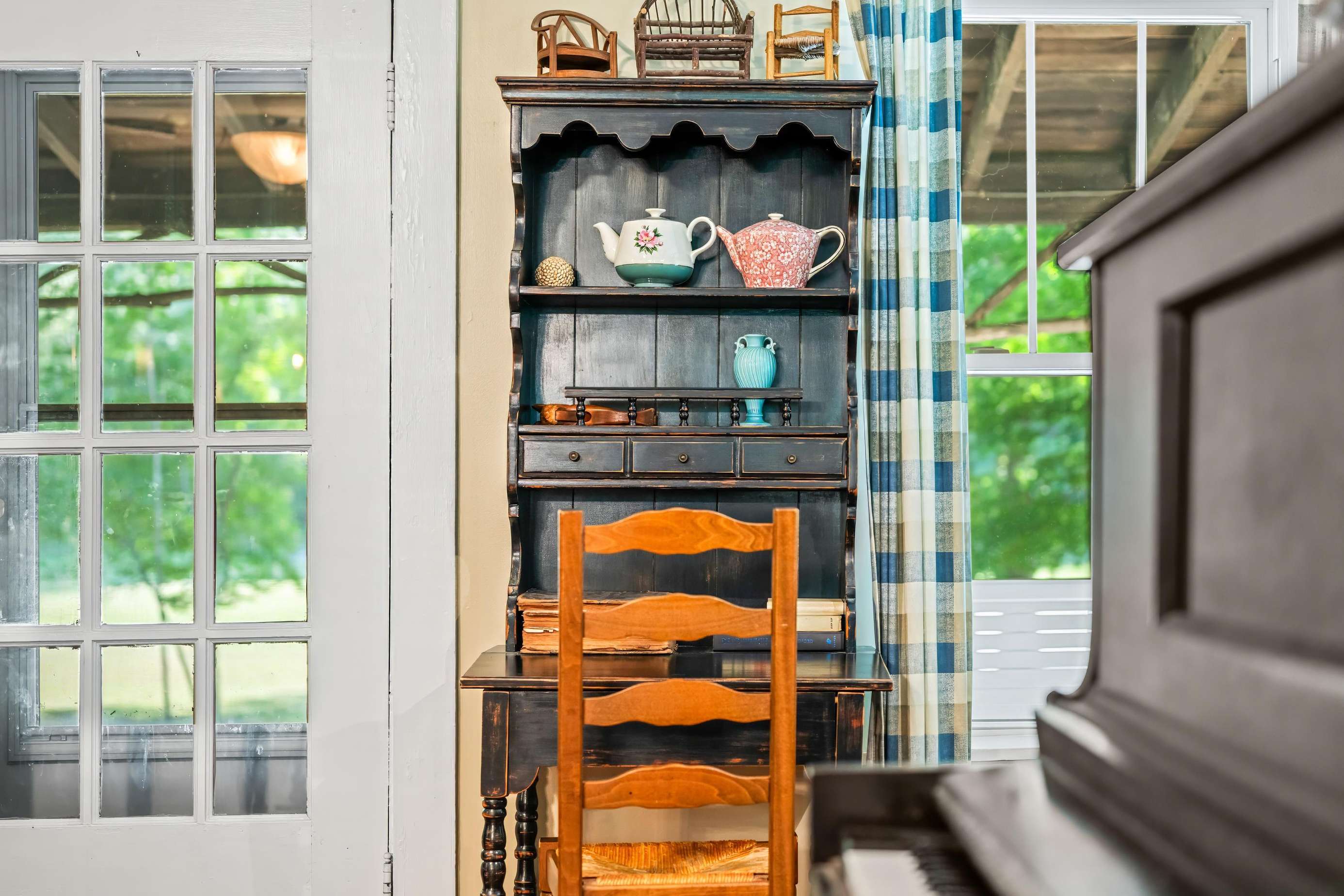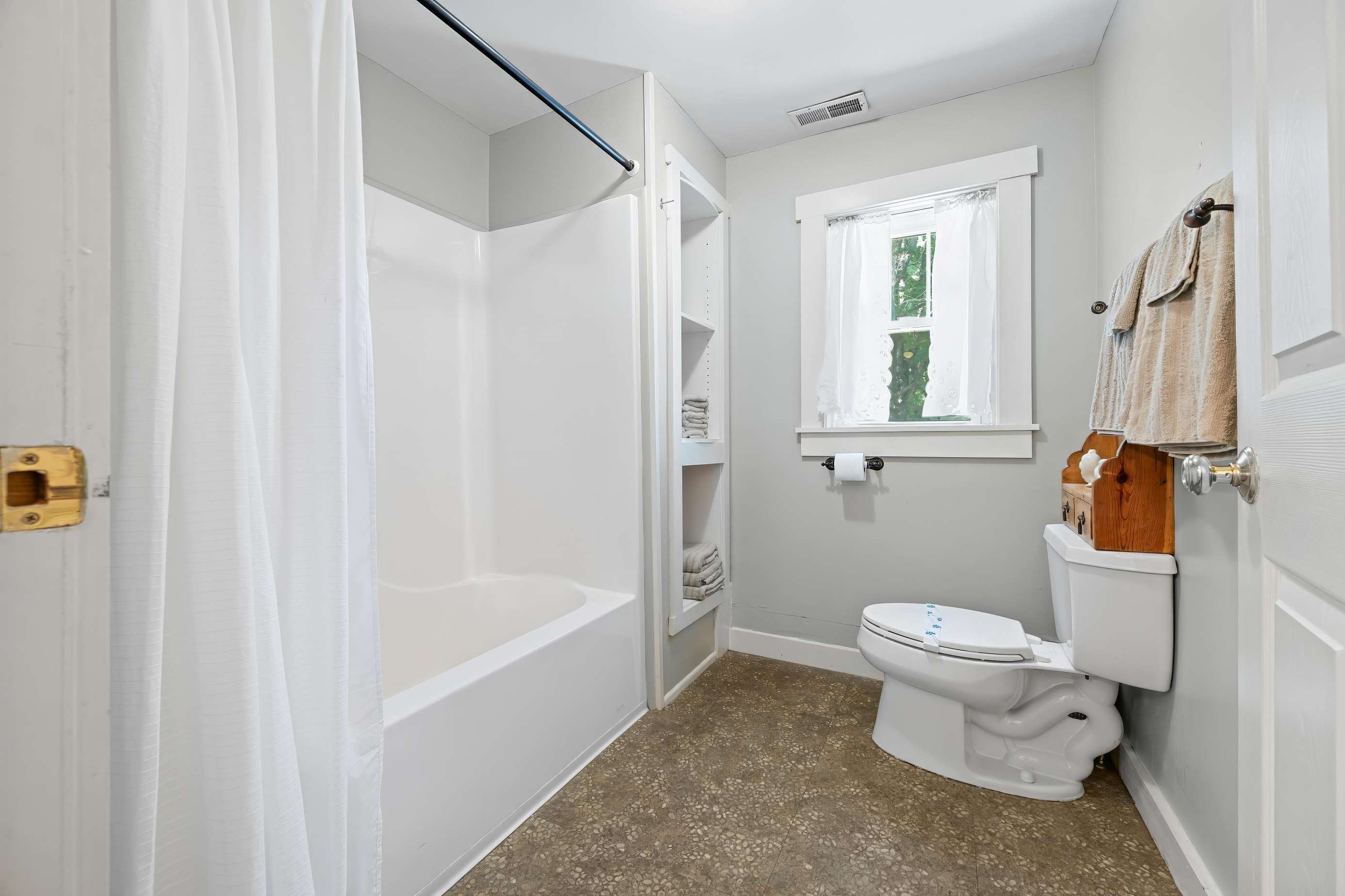 Outside, you’ll find a back patio, charcoal grill, and a fire pit, perfect for roasting marshmallows for s'mores!